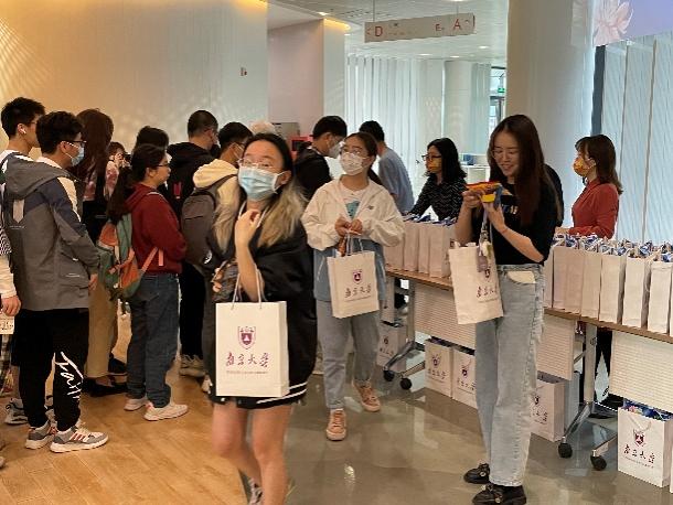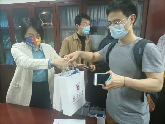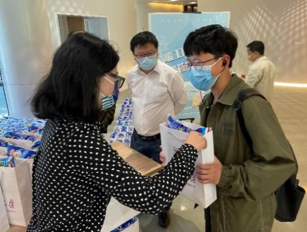 此外,公司党委专程为鼓楼校区的60余名研究生同学送去关怀。尉芹溪老师、王晓曼老师和李敏老师,载着一车的物资,也载着公司满满的关心,和鼓楼校区的同学们亲切交流。