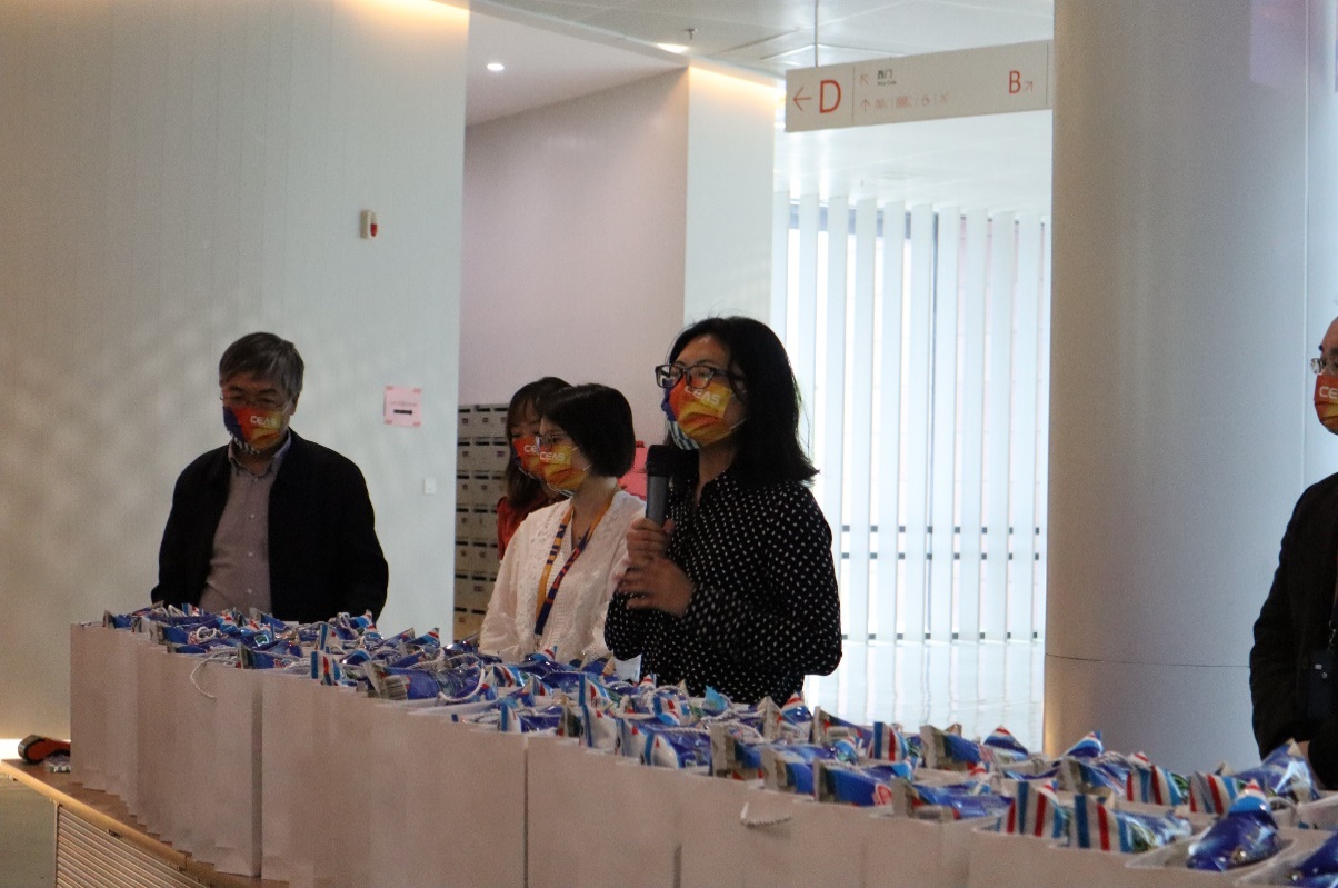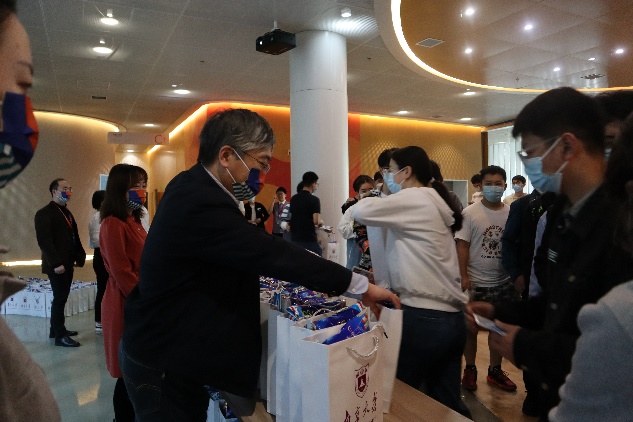 同学们秩序井然地刷卡签到,出席活动的领导和老师为大家分发“抗疫大礼包”,笑容洋溢在每一位同学的脸上。