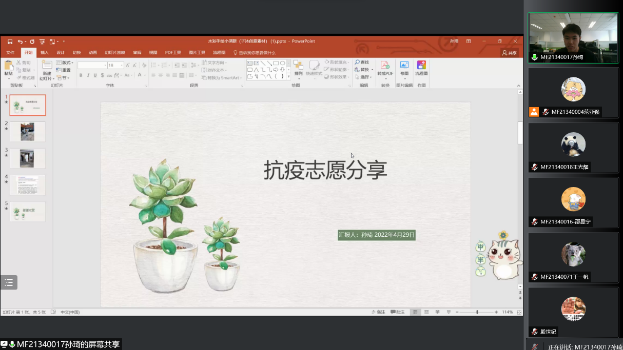 同心防疫,党旗飘扬。为贯彻习近平总书记的系列讲话和指示精神,学习身边优秀党员冲锋在前、奋战一线的先进事例,凝心聚力增强广大党员同志的团结力和战斗力。2022年4月29日上午11时,2021级硕士生第一党支部在线上隆重举行“让党旗飘在一线”主题党员大会。会议由党支部书记范亚强同志主持,共32名正式党员和预备党员,20名入党积极分子参加会议。