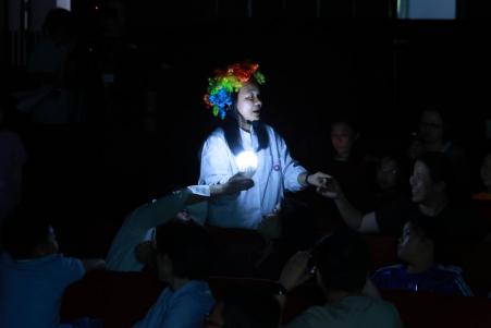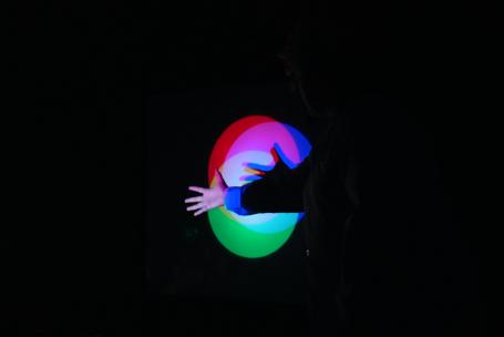空气炮弹实验将全场气氛引入最高点,孩子们纷纷踊跃举手上台体验,用手抓取空中的烟雾圈,在游戏中感受空气的“威力”。光学实验也是异彩纷呈,穿墙而过、三色影子、三棱镜彩虹让大家在光影变换中感受光学的魅力,孩子们也在人体灯泡中体会了电流的神奇。