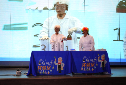 化学实验部分更是令大家目不转睛,大象牙膏的壮观效果、变色五彩瓶和海绵的神奇现象引发孩子们的一片惊呼,孩子们在化学的海洋中学习到了催化剂和酸碱指示剂的用处,在焰色反应和鲁米诺反应中,孩子们在黑暗中感受火焰闪烁的美丽,学习金属的性质,在火焰掌实验中孩子们与火焰进行“亲密接触”。