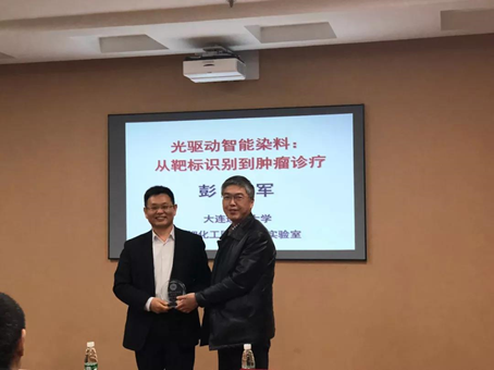 2018年12月7日下午,大连理工大学精细化工专家彭孝军院士应邀来公司参加天地现代工学讲坛系列讲座活动,并做题为《光驱动智能染料:从靶标识别到肿瘤治疗》的学术报告,报告由公司生物医学工程系张弢教授主持。臧文成书记参加报告并代表公司向彭孝军院士赠送讲坛纪念品。