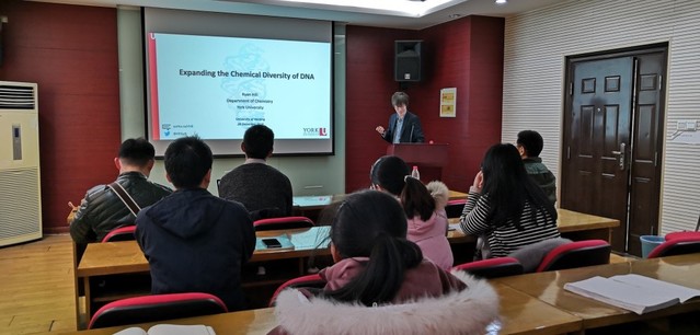 2018年12月28日,加拿大约克大学Ryan Hili教授应魏辉教授邀请来公司交流访问,并做了题为”Expanding the Chemical Diversity of DNA”的学术报告。功能化核酸因其独特的识别和催化活性,已经广泛应用于体外诊断和治疗等领域。为突破天然碱基的限制,扩展其结构和功能多样性,研究人员尝试将非天然碱基引入核酸中。Ryan Hili教授致力于基于非天然碱基核酸的研究。本次报告中,Ryan Hili教授向我们分享了他们在这一领域的最新成果。报告中公司师生与Ryan Hili教授展开热烈的讨论,本次报告对开展核酸研究的师生给予很大的启发,也让其他领域师生对核酸领域的研究有了全新认识。报告结束后,Ryan Hili教授还与公司部分教授进行了单独的会谈和讨论。