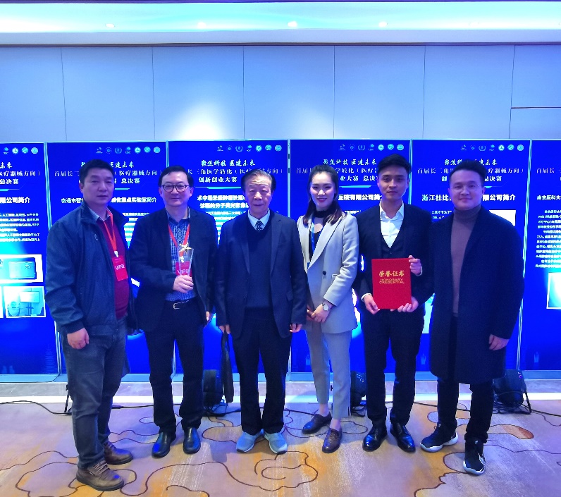 由太阳成集团122ccvip太阳成集团122ccvip生物医学工程系王毅庆课题组在读博士生王子阳,南京诺源医疗倪轲娜(王毅庆课题组硕士毕业生),南京鼓楼医院戴勃(鼓楼医院丁义涛教授-王毅庆课题组培养博士)组成的“肿瘤手术分子荧光导航技术”团队继11月获得江苏赛区第一名后,再接再厉在2020年12月13日举行的“首届长三角医学转化(医疗器械方向)创新创业大赛”总决赛中获得特等奖(第一名)。本次大赛是由长三角三省一市(上海市健康产业发展促进协会、江苏省医健产业联盟、浙江省健康服务业促进会、安徽省健康文化旅游产业促进会)联合组办,以“聚焦科技 医建未来”为主题,通过网络预赛、省市预赛、总决赛三个阶段,历时一年,共有企业、医院、高校近300个团队参加。