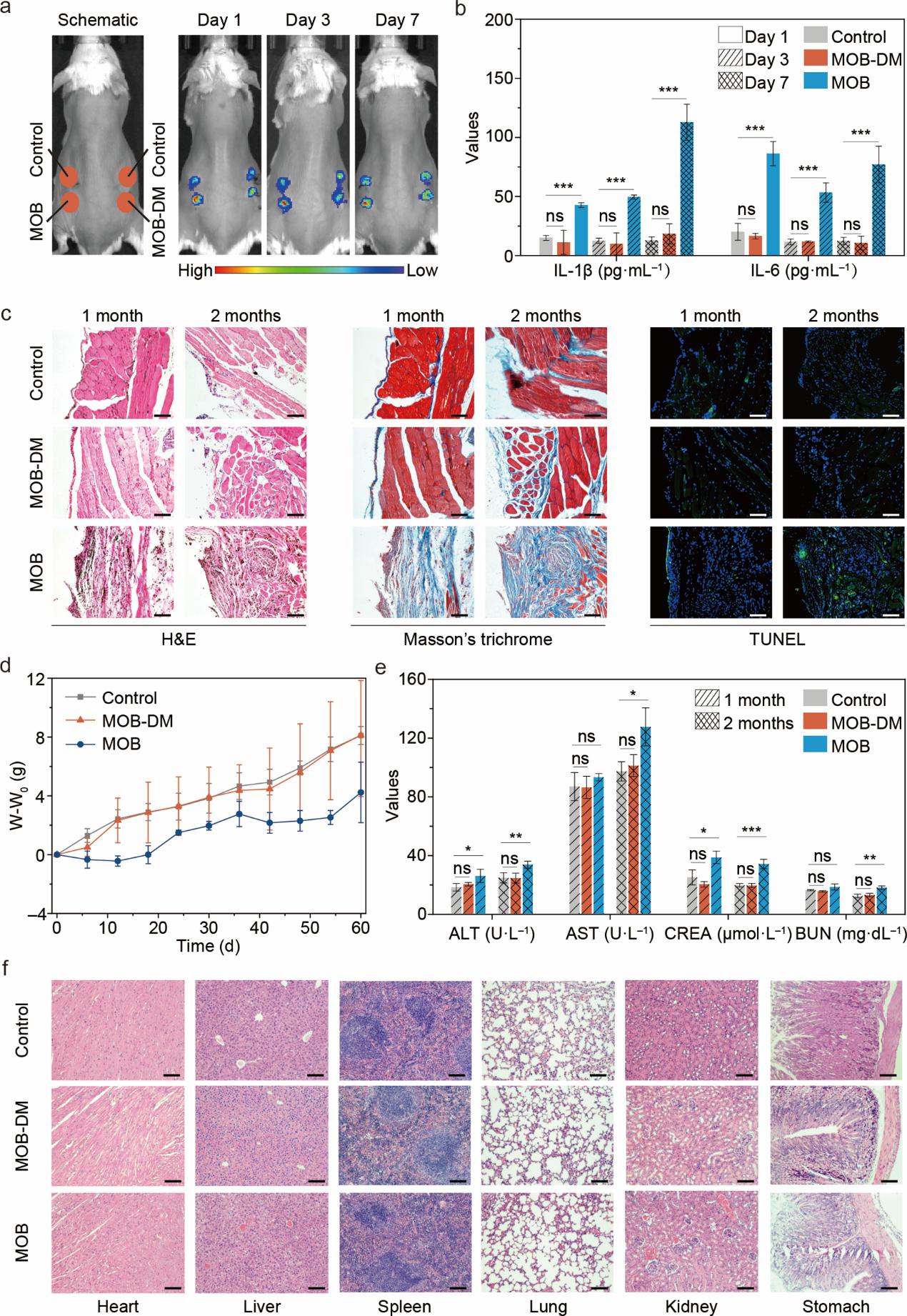 图5 仿线粒体的镁氧气生物电池的体内集成应用展示