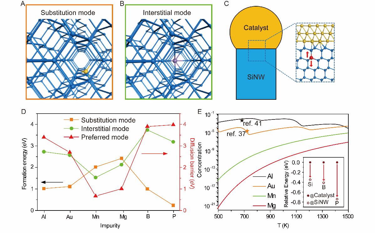 纳米尺度的杂质控制对半导体性质影响巨大,从而对于其在晶体管、传感器、太阳能电池和能源存储等领域的应用至关重要。然而大量金属原子注入半导体纳米材料的现象已经被广泛报道,诸如铝、金等被发现以远高于平衡固体溶解度的方式进入到硅纳米材料中。金属掺入半导体的原子尺度过程尚未被完全理解,因此,如何理解并且控制半导体中金属原子的注入是一个重要挑战。