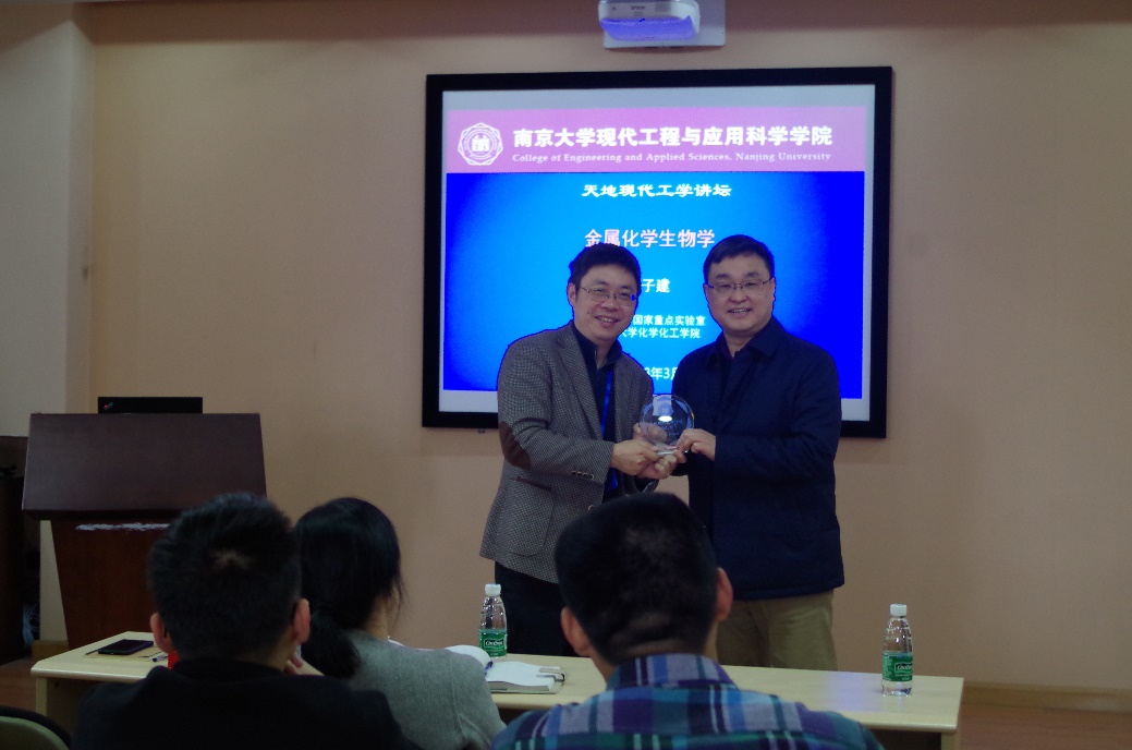 图:陆延青教授代表讲坛组委会向郭子建教授赠送了讲坛纪念品。