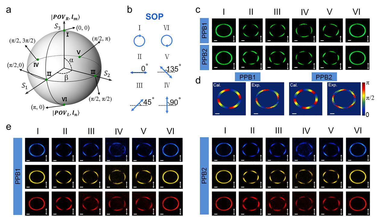 图2 混合阶庞加莱球上不同状态的两种完美庞加莱光束(PPB1和PPB2)实验结果