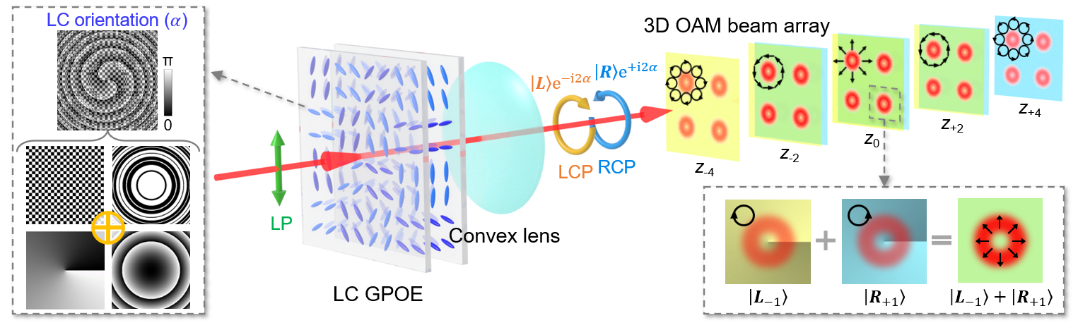 图2. 基于液晶几何相位的OAM光束三维阵列操控示意图
