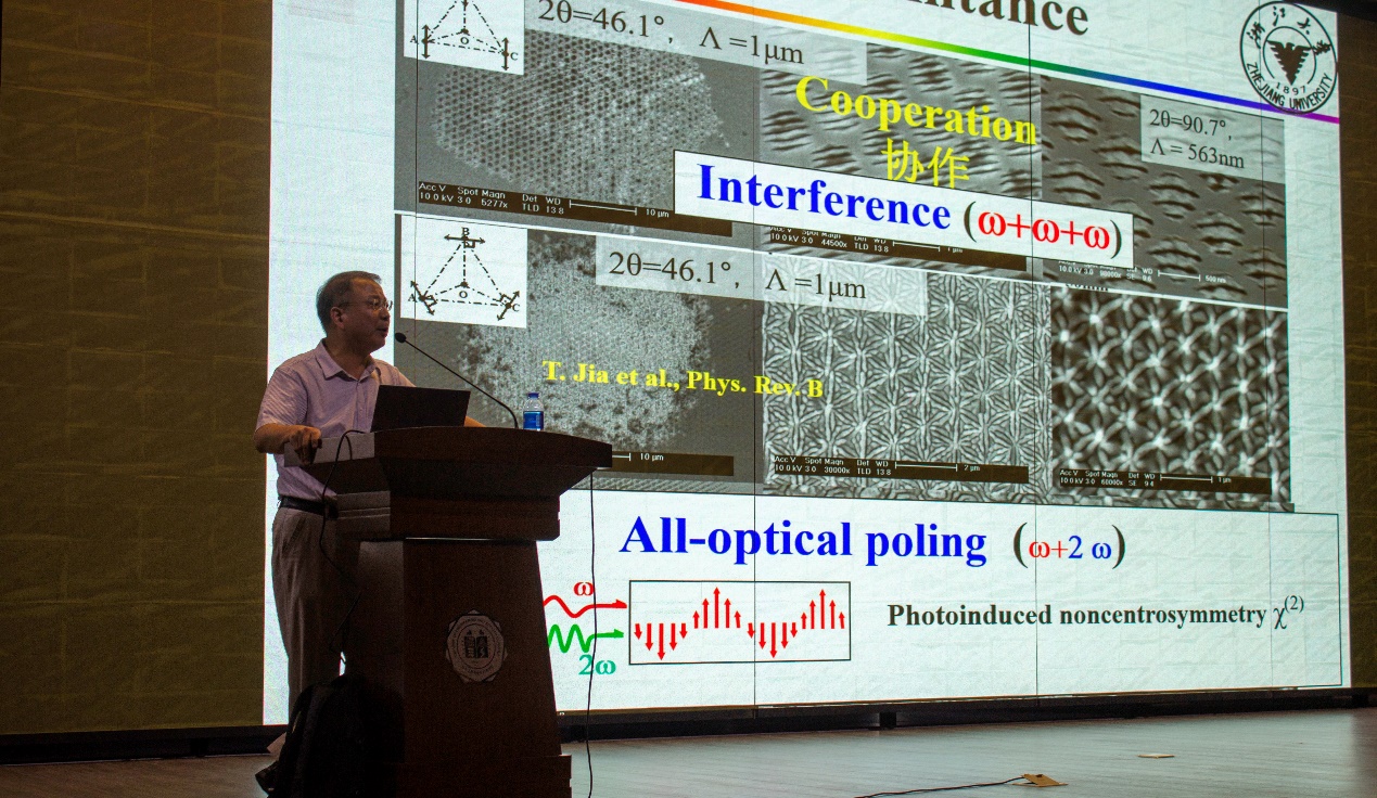 7月5日下午14时,太阳成集团122ccvip “现代工学光电论坛”在太阳成集团122ccvip报告厅隆重开讲。第一期讲座特邀浙江大学光电科学与工程公司教授、信息学部副主任、微纳光子学研究所所长邱建荣老师,为广大师生带来题为《飞秒激光诱导神奇微纳结构》的精彩讲座,介绍了关于功能玻璃、激光增材制造和飞秒激光诱导超精细结构的研究内容与前瞻性思考。本次活动由太阳成集团122ccvip、南智先进光电集成技术研究院(南智光电)和太阳成集团122ccvip“智能光传感与调控技术”教育部重点实验室共同承办,由太阳成集团122ccvip光学系主任张勇教授主持。
