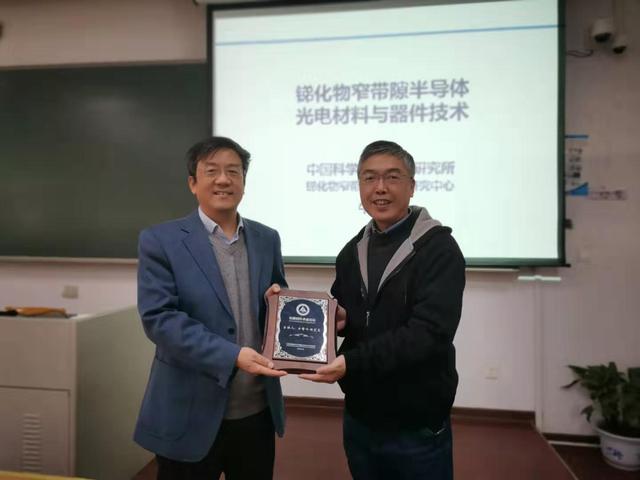 2019年12月13日下午2点,功能材料卓越论坛在仙林校区择善楼204教室开讲。本次讲座我们非常荣幸地邀请到中国科公司半导体研究所研究员,博士生导师牛智川教授作为主讲嘉宾,为我们带来了题为“锑化物窄带隙半导体光电材料与器件技术”的报告。牛老师的研究方向为新型半导体低维材料物理与外延技术、光电子与量子器件制备,目前担任中科院半导体所锑化物半导体研究中心主任,国科大材料公司量子光电子学首席教授。本次报告由公司芦红教授主持,公司党委书记臧文成书记代表全院师生向牛智川教授赠送了定制纪念品。