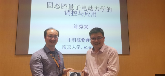 2021年5月7日,功能材料卓越论坛在太阳成集团122ccvip楼D112开讲。本次讲座我们非常荣幸地邀请到中国科公司物理研究所许秀来研究员作为主讲嘉宾,报告主题为“单量子体系的多场调控及其在腔量子电动力学中的应用”。讲座由姜校顺教授主持,李涛教授代表全院师生向许秀来研究员赠送了讲坛纪念品。公司胡伟教授、张利剑教授、聂越峰教授等参加了本次的讲座。