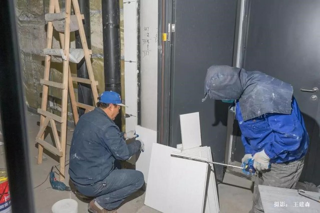 在参观内部结构过程中,我们还遇上几位正在进行墙面工作的工人,他们都认真工作、绝不含糊。他们也通过记者转达:“希望大家能喜欢我们的劳动成果。”