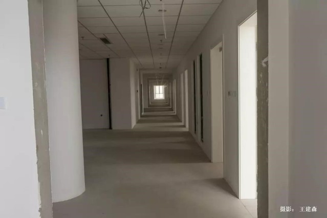 在物业管理人员的带领下,记者团进入院楼内部,发现除部分电力设施和墙体工作还未完成以外,大楼整体上已经施工完毕,目前正在完善整栋大楼的通风系统。