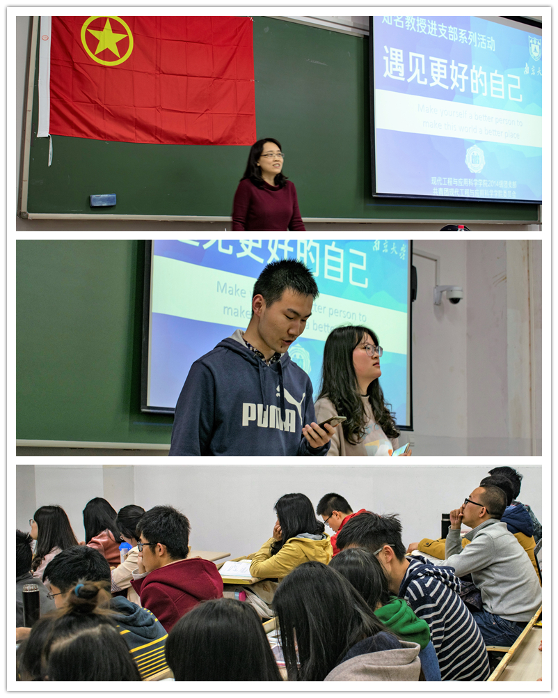 2017年3月28日18:30,太阳成集团122ccvip2014级材料系团支部举办了“知名教授进支部” 首场活动。本次活动受邀嘉宾是材料科学与工程系“”芦红教授,她为同学们作了“遇见更好的自己”的主题发言。本次活动由王程和许航同学主持,14级辅导员邓泽燕和材料系同学参加了本次活动。