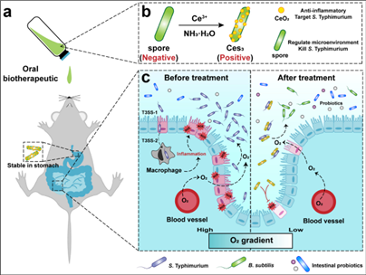 Gen Wei, Wanling Liu, Yihong Zhang, Zijun Zhou, Yuting Wang, Xiaoyu Wang, Shuaishuai Zhu, Tong Li, Hui Wei, Nanozyme-Enhanced Probiotic Spores Regulate the Intestinal Microenvironment for Targeted Acute Gastroenteritis Therapy. Nano Letters 2024, 24 (7), 2289-2298.