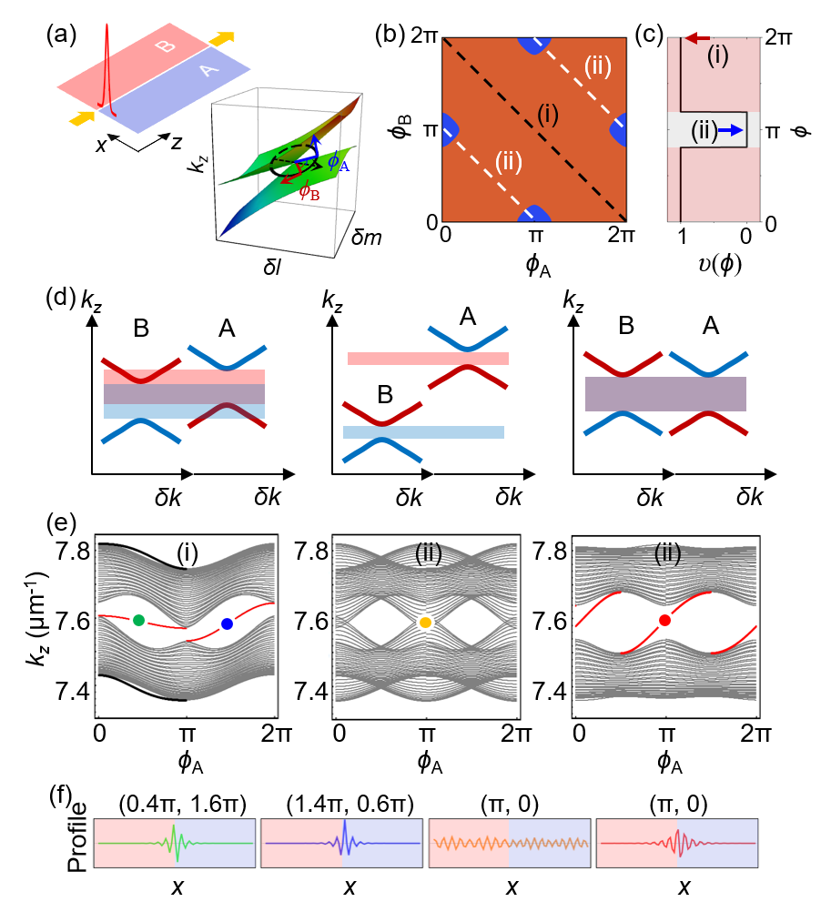 The research shows that, besides the topological phase transition, adjusting the relative rotational phase of the two Weyl media in parameter space can also control the emergence and disappearance of topological interface modes (Fig. 2a,b). This control mechanism originates from the tilted dispersion characteristics of Type-II Weyl structures, leading to complete (partial) matching or complete mismatch of bandgaps at different rotational phases (Fig. 2d). Therefore, although band inversion always exists, it does not necessarily result in topological states. In this case, the offset of the bandgap will determine the appearance and disappearance of topological states (Fig. 2e,f). In the Type-I case, as long as the topological orders are opposite, topological interface modes will always exist. Researchers further defined a band-shift index to precisely describe this unique topological state phase transition effect in Type-II Weyl systems (Fig. 2c).