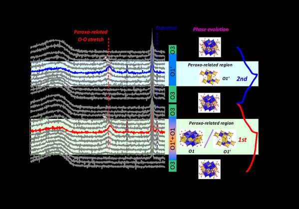 By X-ray absorption spectroscopy and X-ray photoelectron spectroscopy characterization of the original, charged and discharged electrode sheets, a significant price change process for the O element is found while the corresponding iridium element has no price changes during the charging process. At the same time, the price of manganese is different from the previous manganese-based materials. During the charging process, the manganese is not completely converted to +4 price but consists part of the +3 price. A similar phenomenon is found in the previous lithium-rich layered materials, which results from the change of O environment- caused by sliding between the laminates-around the price-changing metal. The interpretation can be supported by the phase transition from O3 to O’1 (O1).