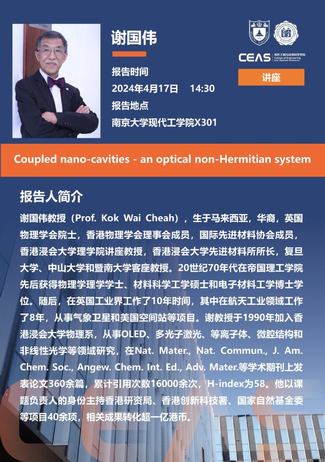 Prof. Kok Wai Cheah, Academician of the British Physical Society: Coupled nano-cavities - an optical non-Hermitian system
