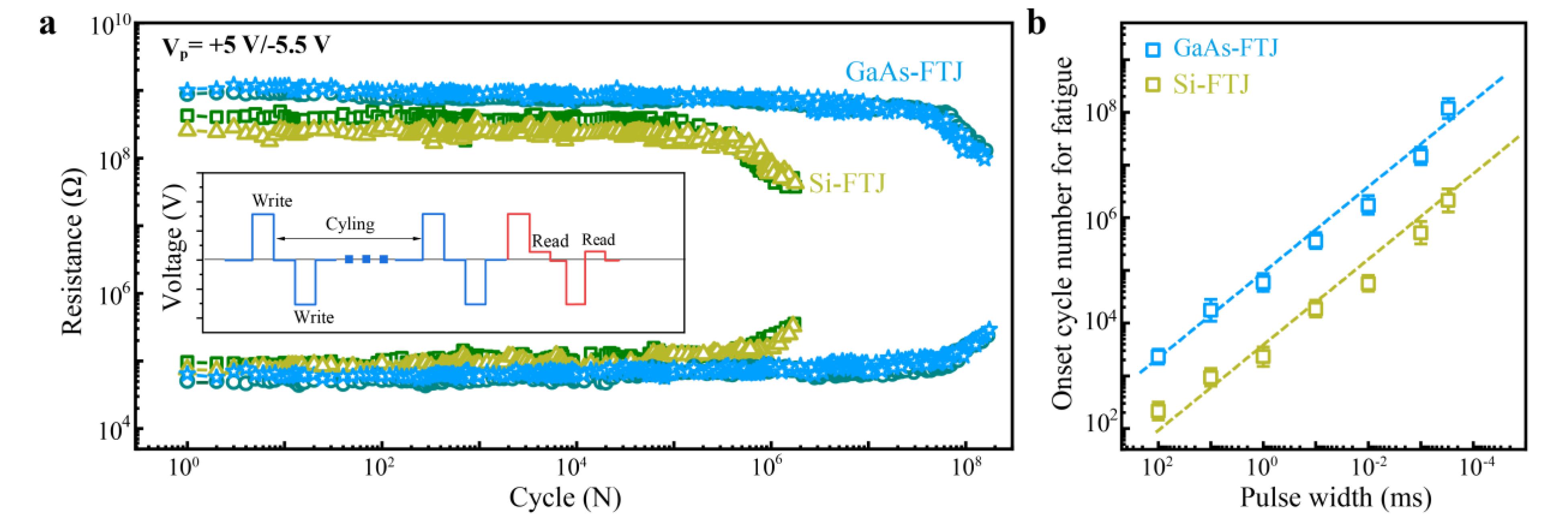 Fig. 1. Resistance fatigue performance of Si-FTJ and GaAs-FTJ.